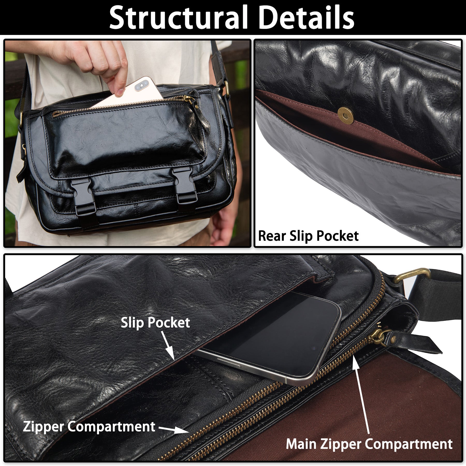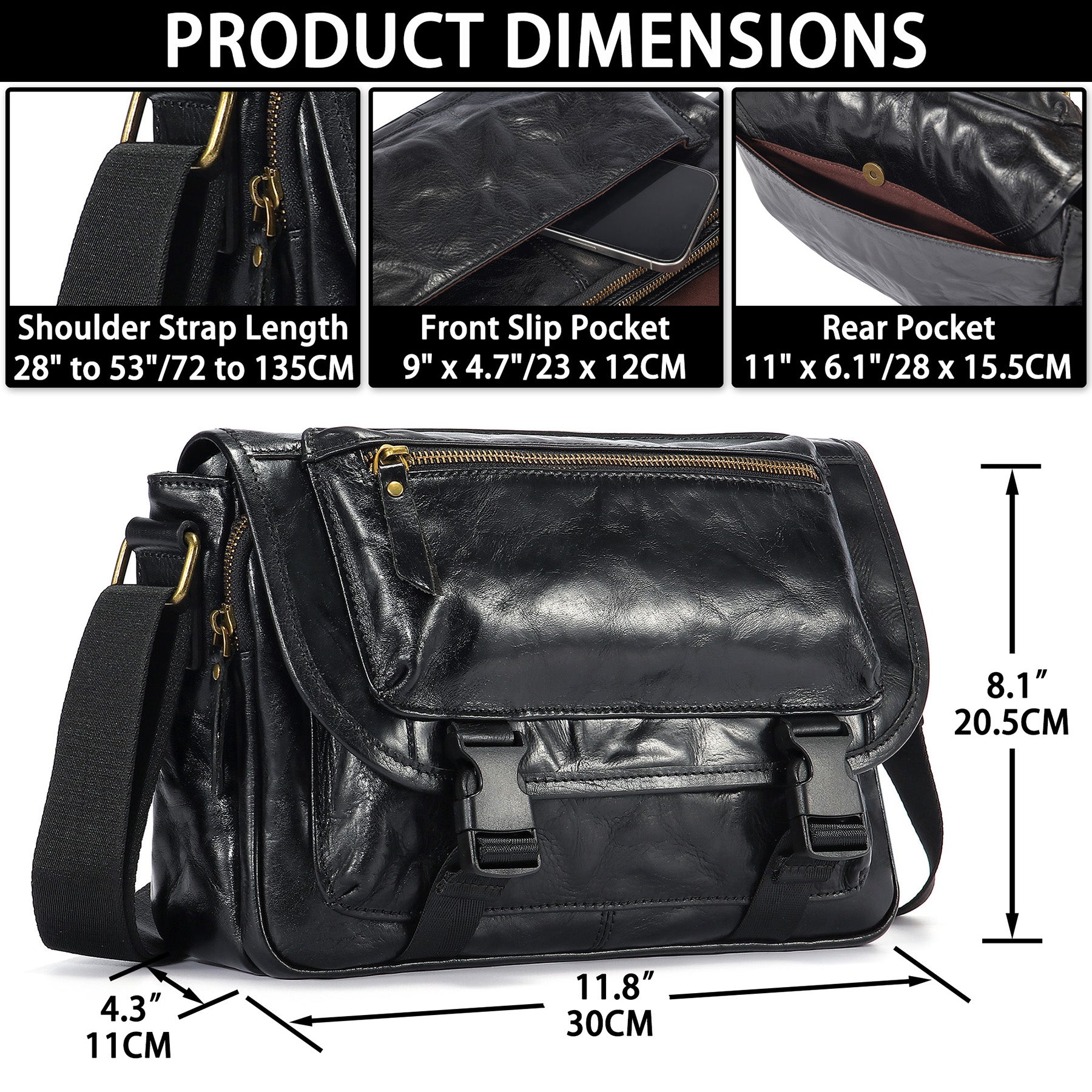 - WRINKLED STYLE LEATHER – This special style is created by repeatedly grabbing the leather by hand to create unique wrinkles, making the messenger bag look more casual and unique