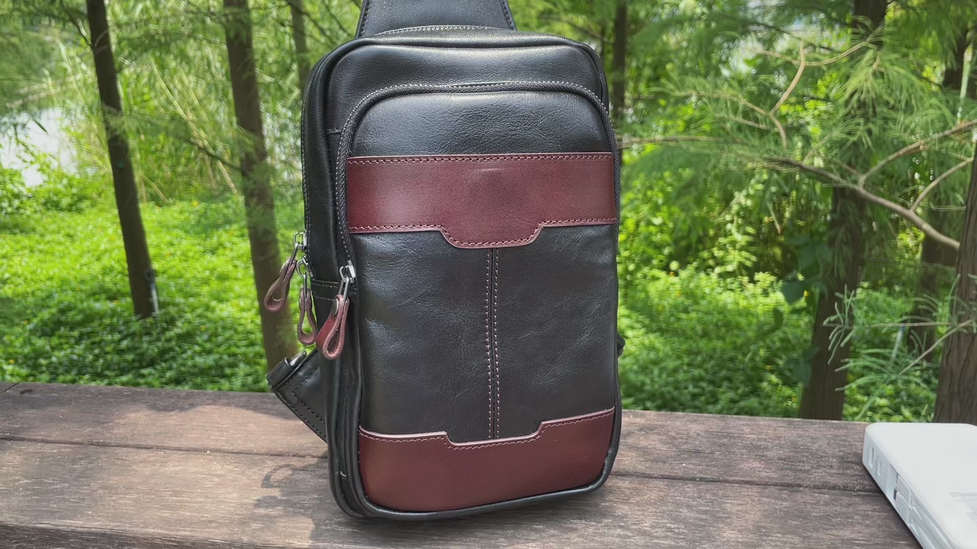 - GENUINE LEATHER SLING CHEST BAG – This cross body shoulder bag for men and women was made of soft genuine leather, combine with comfortable cotton lining and heavy duty metal zippers, this leather bag is suitable for hiking, cycling, and daily travel