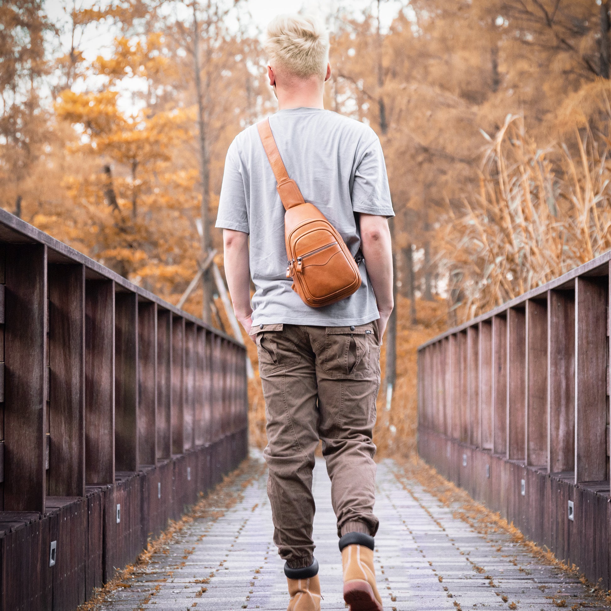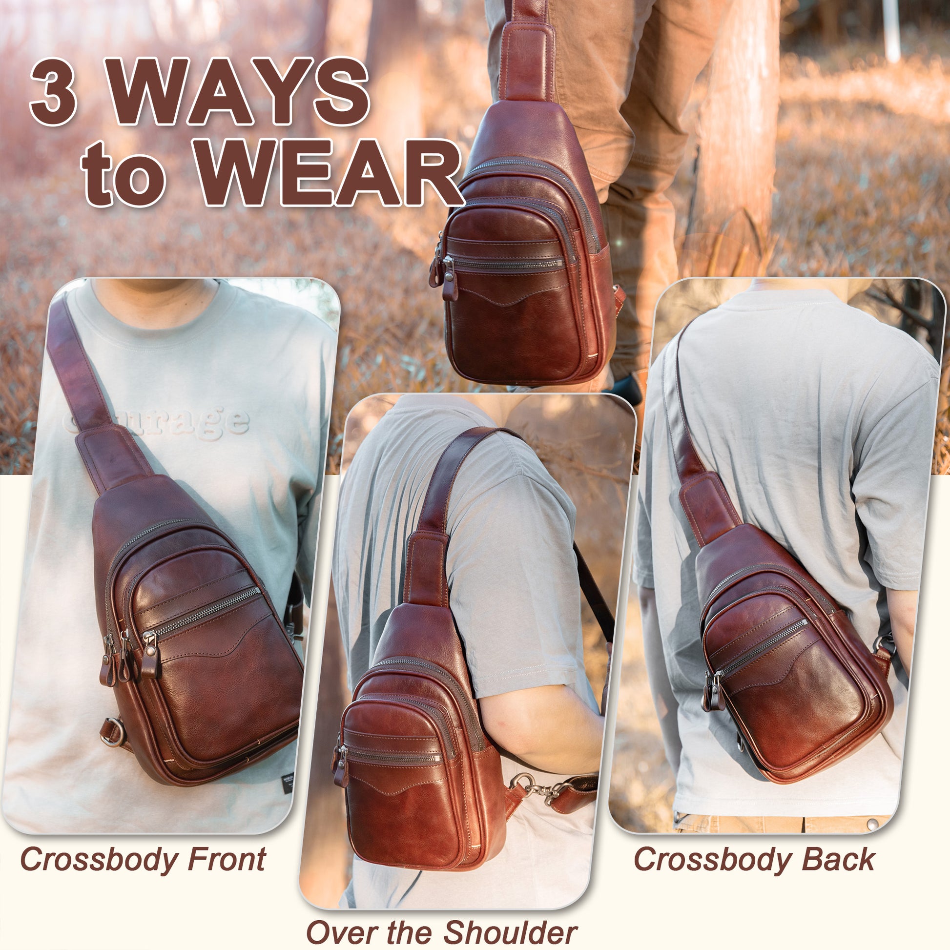- GENUINE LEATHER SLING CHEST BAG – This sling chest bag for men and women was made of genuine leather, combine with comfortable cotton lining and heavy duty metal zippers, this leather bag is suitable for hiking, cycling, and daily travel