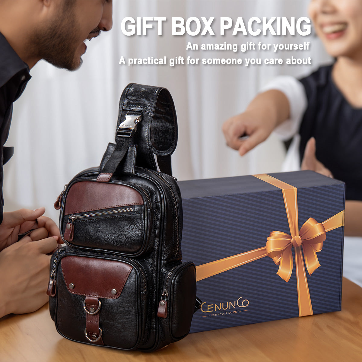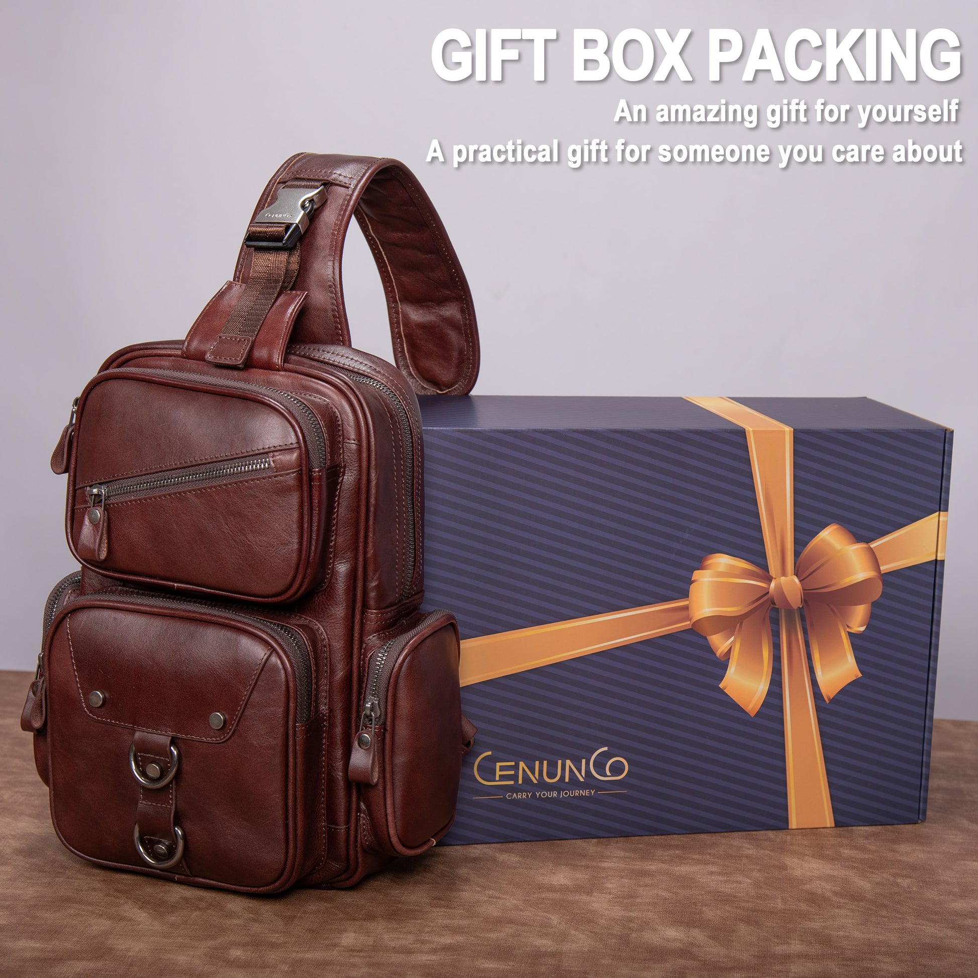 CENUNCO Genuine Leather Sling Bag for Men Large Crossbody Shoulder Bag Casual Sling Backpack Anti-Theft Travel Chest Purse - 30187